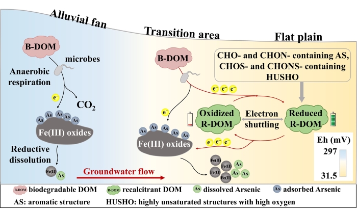 高砷地下水的主要形成过程是含砷铁(III)氧化物的还原溶解,其中溶解的有机物(DOM)作为电子给体和电子穿梭体起着重要作用。但地下水中DOM的电子穿梭能力及其对砷(As)运移的影响尚不清楚,这使得地下水As富集的潜在机制难以捉摸。