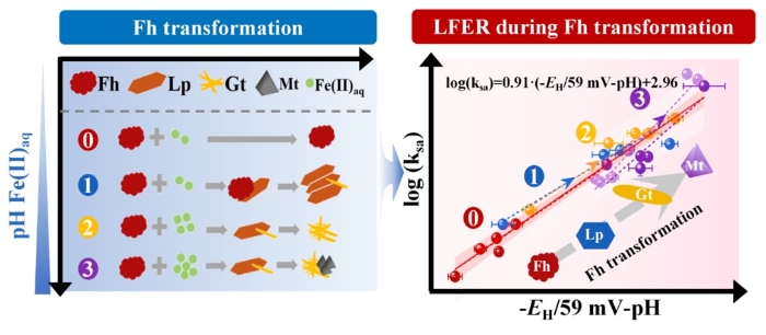 本文耦合矿物表征、水化学和电化学分析技术,阐明了水铁矿晶相转化过程中还原能力的调控机制,构建了硝基苯还原的线性自由能关系,为预测污染物环境归趋和指导强化自然衰减技术提供了理论和技术支撑。